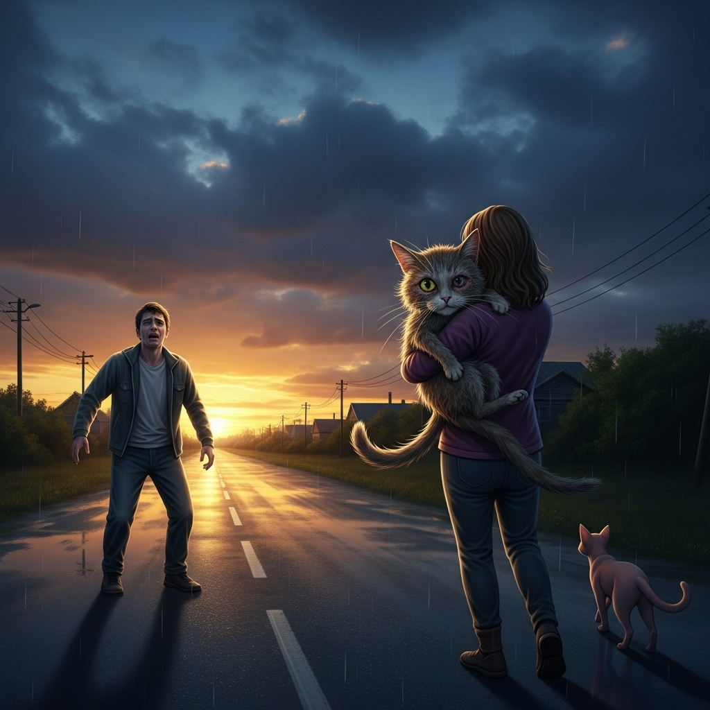 He opened the door. They stood on the threshold, shyly shuffling their feet. “We came to your celebration, Sasha.” And they darted into the house. One was bigger, the other smaller. He could barely contain himself. He trailed behind them. They were already sitting at the table, politely munching on cookies. He jumped up, slapped his palm down on the outstretched hand reaching for the plate. On the silky paw. “That hurts, Sasha!” He was boiling. “You came to my celebration, huh? Who invited you?” “But we love you, Sasha.” “Why the hell do I need your love! You’re only bringing me losses! Do you have any idea how much I’ve paid in fines because of you? Now I only have these cookies for the celebration. The table should be set; I wanted to invite normal guests! Normal ones! And now I’m stuck here all alone because of you.” “Forgive us, Sasha.” She looked at him with sorrowful reproach, holding the cat close to her chest. “And we thought you’d be happy to see us, Sasha, when we came to your celebration.” Once again, the silky paw reached for the plate of cookies, followed by the second one. “I said – don’t take it! This is my last one! I warned you: you can’t approach children. And you? Why did you go to the playground?” “They called us to play, Sasha. We were just playing.” “And I got a fine! All because of you. Why are you clinging to me, huh? Why do you keep coming around?” “Because you’re nice, Sasha. You never sent us away before. Should we leave, Sasha?” “Get out! Scram! And I don’t want to see you again!” They looked at the floor guiltily. One was bigger, the other smaller. “Okay, Sasha, as you wish. We will leave, Sasha. And we won’t come back. We promise you.” In frustration, he went to the kitchen. He heard a woman’s voice behind him: “Let’s go, kitty. See? They’re driving us away.” He shouted: “Yeah, sure, you’ll leave! You can’t be gotten rid of; you’re stuck like glue!” The day they first showed up, he was grilling barbecue in the garden with his wife. He leaned over the grill, and suddenly, his wife called out excitedly: “Look, look, what a delegation is coming to you!” He turned around. They silently approached the garden table and started on the meat. The cat was huge, with matted fur and a mangled eye. And his friend was a slender, slightly pink cat. Something shifted in him, and he couldn’t chase them away… He returned from the kitchen to the room. No one was there. Could it be that they really left? Yes, they had left! He cried briefly. He rushed to the porch, flung the door open. There was no one in the yard. He had to catch up, persuade them to come back! Otherwise, they would never come again! The street in the settlement was deserted. He ran to the playground. Drops from the recent rain adorned the metal structures of the swings. They weren’t there. He threw his head back and yelled loudly, at the top of his lungs: “Where are you? Stop! Come back!” He didn’t know where to look for them now. And they didn’t know of his regret. They thought he was happy that they had left forever. And how would he manage without them now, huh? “A-a-a!” – he groaned in despair, gazing at the yellow patch of the sunset sky. He saw them at the end of the street, they were leaving – one bigger, the other smaller. Thank you, thank you, Lord! “Wait!” – he shouted as he ran. They stopped, turned around. A wave of relief washed over him. “Forgive me,” he panted. “Come back to my celebration! Please, I beg you.” “And can we eat cookies?” – the smaller one asked timidly. “Of course, as many cookies as you want! Come on, come on to my celebration!” He hurriedly let them through the gate, and the three of them climbed onto the porch. “See, kitty, everything is fine; we’re back at Sasha’s celebration,” – she said, stroking the cat. “Let’s go to the table,” – he said to the bigger one and the smaller one. “I’ll bring another bunch of cookies now!” “You’re very nice, Sasha,” – said the bigger one. And the smaller one looked innocently, slightly pouting his lips. He walked into the kitchen. On the refrigerator again, for the umpteenth time, he caught a glimpse of a piece of paper with a brown tea ring in the middle. A note. “I told you many times that I would leave. You didn’t believe me. Today I left you forever.”